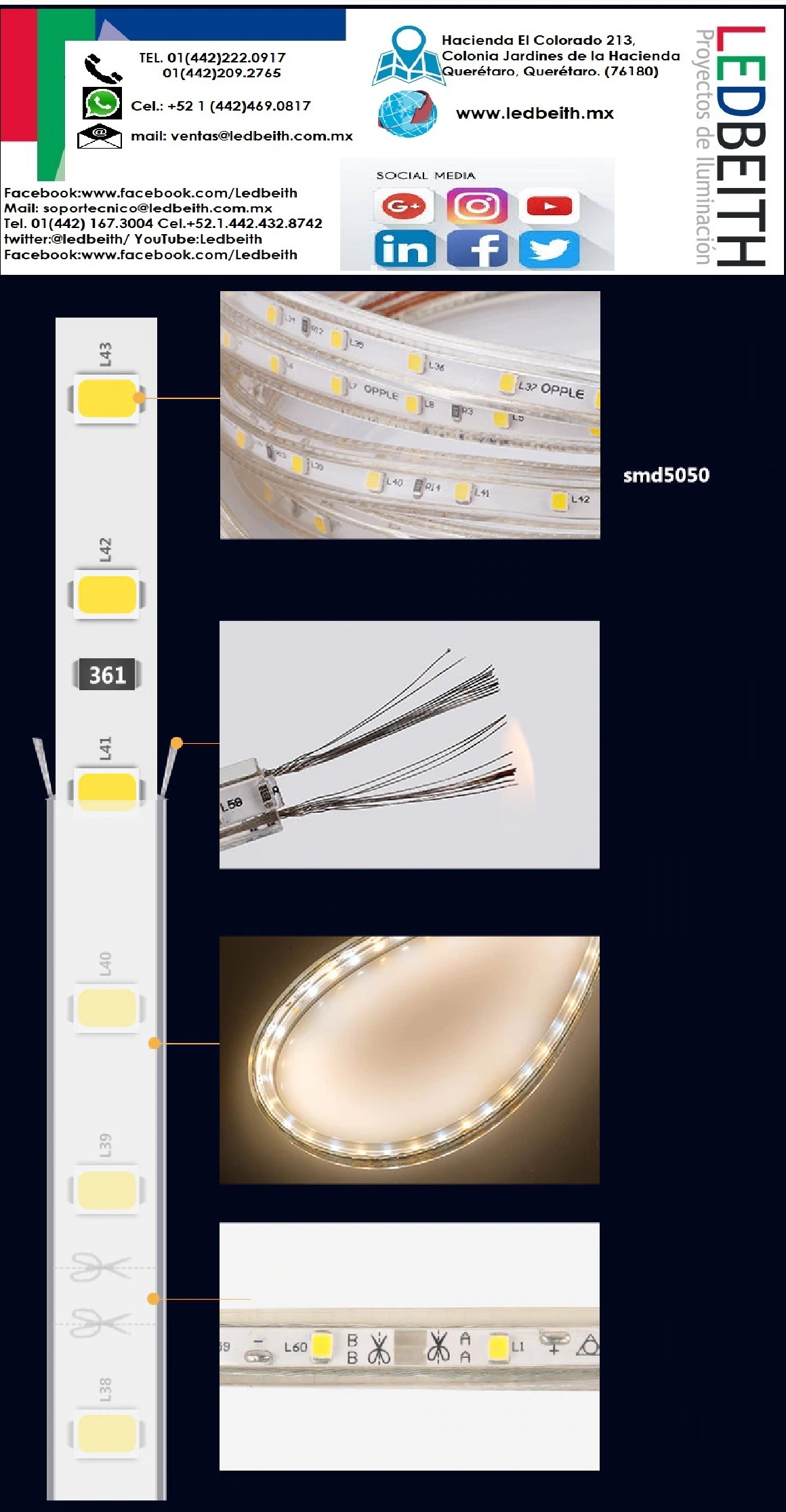 Especificación: Artículo: tira de luz LED Tipo de LED: 5050 SMD Emisión de color: blanco cálido Cantidad de LED: 60leds / Meter Voltaje de entrada: AC 110/220V Temperatura de trabajo: -20 a 60 Resistente al agua: sí. Tubo de silicona IP68 a prueba de agua Larga vida:> 50,000 horas Certificación: CE y RoHS
